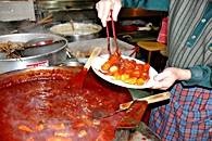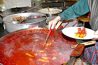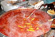 日本ではまだ馴染みの薄い唐辛子味噌であるコチュジャンと、砂糖を混ぜた甘辛いソースがお餅や野菜に絡まるトッポッキ。初めは少々辛味が強く感じますが慣れてしまうと止まらないほどはまってしまう韓国の定番のオヤツです。今ではすっかり外国人観光客にも馴染まれ、市場で買って食べている方も多いんじゃないでしょうか。さて、このトッポッキの専門店「タリチッ」は、屋台から始まって大型専門店にまで発展したという評判のお店です。テレビでは、韓国一おいしいトッポッキのお店と紹介されたこともある韓国でも有名なお店です。ほかのトッポッキのお店とどこが違うのか、まず材料からして違います。トッポッキの美味しさの秘密は、なんと言っても自家製のコチュジャンにあります。
