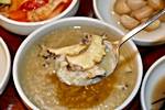アワビはミネラルやビタミンが豊富な健康食。お粥とあわせて野菜のおかずをとればまた一層栄養バランスがよくなる。 済州のアワビ粥は採れたてを使用するため新鮮で内臓も一緒に煮込むためコクがある。