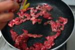 ◇牛肉は3センチ程度の大きさに切り、油を引いたフライパンで炒め、材料で示した調味料1(牛肉用)を加え味を調え、器に移しあら熱を取ります。