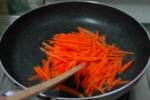 ◇にんじんを長細く切り、フライパンで炒め、醤油と砂糖で味を調える。