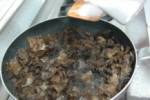 ◇干ししいたけをぬるま湯に浸し、やわらかく戻ったら、形よく切り、油を引いたフライパンで炒め、醤油、砂糖を加え味を調える。