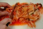 ◇鍋に油を引きキムチと豚肉を加え焦げ付かないように炒めていく