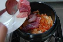 豚肉の代わりにツナを加えて作ればチャムチキムチチゲになります。ツナを加える際にはツナ缶のスープも一緒に加えてください。