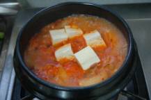 キムチと一緒に豚肉や野菜などを煮込んで作るキムチチゲは韓国を代表する家庭料理と言え、材料も冷蔵庫の残り物を利用することができるので、一般家庭でも食堂でも広く食べられている鍋料理です。キムチチゲに使うキムチは発酵が進んで、そのままで食べるには酸味の強くなってしまったキムチを利用しますが、この酸味がキムチチゲ特有の味を引き出すことができると言われます。食堂などではトゥッペギと呼ばれる小さな素焼きの鍋で一人前ずつ出されることが多いですが、家庭では大きな鍋で作って、皆でつついて食べます。また好みにもよりますが、カレーと同様に作りたてよりも翌日の方が味が染みて更においしくなるとも言われます。
