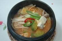 日本人にも馴染み深い味噌を使った鍋料理。韓国の食堂では一般的にトゥッペギと呼ばれる一人前用の小さな素焼きの鍋で調理され、そのまま鍋ごと出てきます。韓国の一般家庭料理として家庭でも食堂でも人気の高い定番の料理です。日本の味噌汁は、味噌をいれて沸騰直前に火を止めるなど味噌の風味を大切にしますが、韓国では味噌を入れ、更にグツグツと煮込んで調理します。脇役的な日本の味噌汁と違い、テンジャンチゲは具沢山でコッテリとした味なので、テンジャンチゲだけでもご飯一杯軽く食べることができます。家庭でも簡単に作ることができますのでぜひ一度チャレンジしてみてください。