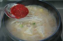 最後に加える唐辛子の粉は、十分にチゲに味がついていますので、辛いものが苦手な方は無理に加えなくても大丈夫です。