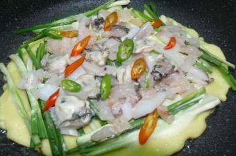▷いか:1/2匹 ▷牡蠣:1/2カップ ▷小口ねぎ:300g