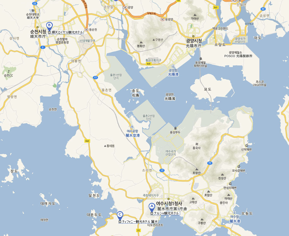 ナルシャ観光ホテル 順天ロイヤル観光ホテル ティファニー観光ホテル 麗水