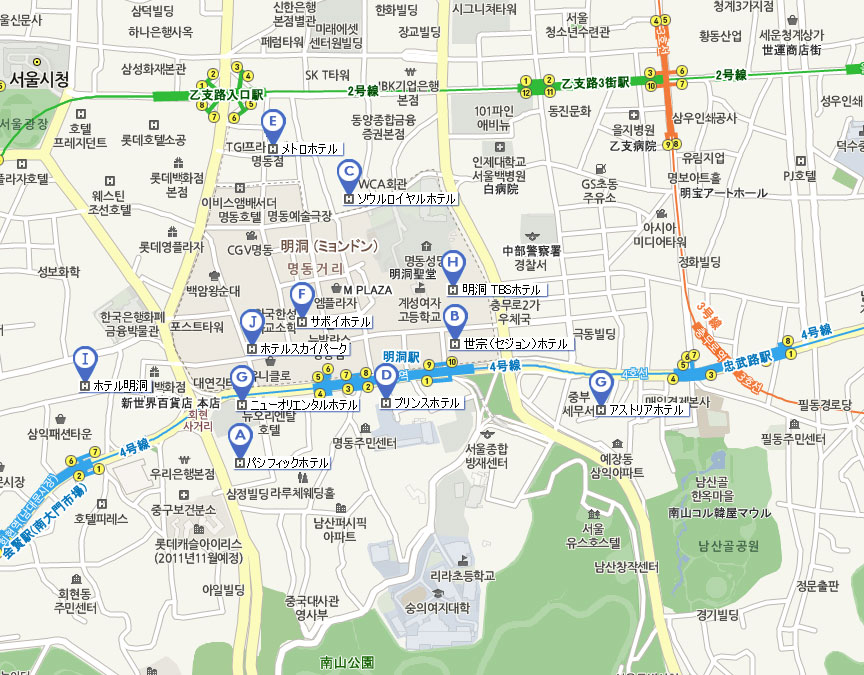 パシフィックホテル 世宗(セジョン)ホテル ソウルロイヤルホテル プリンスホテル メトロホテル サボイホテル ニューオリエンタルホテル 明洞 TBSホテル アストリアホテル ホテル明洞 ホテルスカイパーク