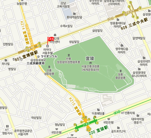 【 アクセス】 ♣ 仁川空港 ⇒ ホテル アクセス • KALリムジンバス : バス乗場:《第1T》3B 《第2T》19 運行間隔:20~30分 所要時間:100分 6703番(江南行き)バスに乗り、ラマダホテルホテルにて下車。 • タクシー : 一般55,000ウォン程度 所要時間 : 約78分 ♣ 金浦空港 ⇒ ホテル アクセス • 地下鉄 : 金浦空港(Gimpo Int’l Airport)駅から地下鉄5号線に乗車し、永登浦区庁(Yeongdungpo -gu office)駅で地下鉄2号線に乗換えて 宣陵(Selleung)駅下車。 8番出口から徒歩約10分。 • 一般リムジンバス : バス乗場: 国際線6番 国内線4番 運行間隔:15~20分 所要時間:約62分 6000番バスに乗り、2号線・盆唐線宣陵(ソンヌン)駅下車。タクシーで約5分。 • タクシー : 一般25,000ウォン程、所要時間 : 約45分 ♣ その他 情報 • チェックイン 14:00、 チェックアウト 12:00 • NHKなど衛星放送 受信可。 • Wi-Fi無料、 有線インターネット無料 • 徒歩 2分以内にコンビニあります。 • 現地の事情により予告なしに変更される場合もございます。あらかじめご了承ください。 • 予約の確認、変更依頼、取消はMy予約確認ページにて行えます。 • メール送受信状況の確認、お客様とハナビツアーとのメッセージのやりとりはMy予約確認ページ ⇒ メール送受信 にて行えます。 • 最終更新日 : 2020. 01. 31