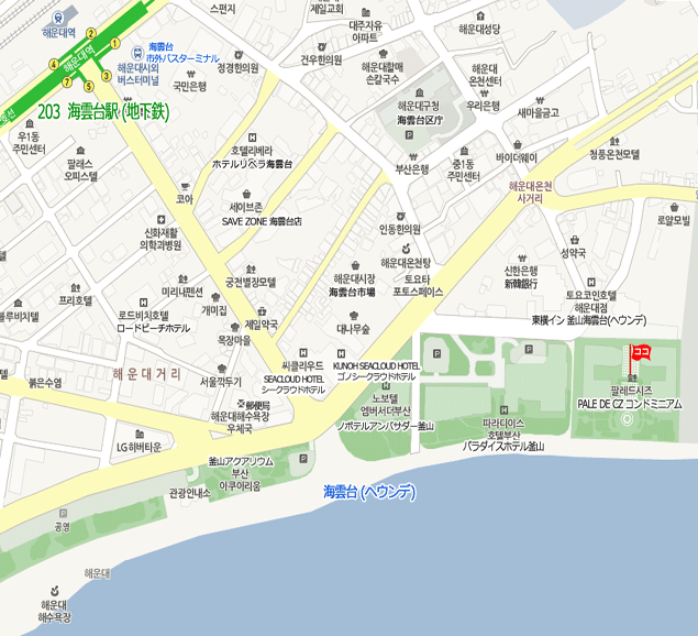 地下鉄2号線海雲台(Haeundae)駅3番出口 徒歩12分