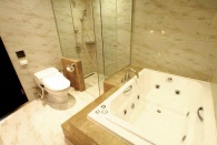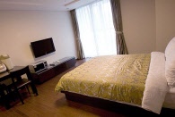 ルームタイプは2名でご利用いただける15坪のスーペリアルームから、3つのベッドルームにホームシアターが付いた大型リビングルーム、プール型ジャグジーまで設置された10名まで利用できる141坪のスイートルームまで様々なタイプのお部屋が用意されています。客室内にはキッチン、冷蔵庫、調理器具、炊飯器、洗濯機など長期滞在者やご家族連れなどに便利な設備が整っています。ただシャンプーやせっけん、歯ブラシなどは準備されていませんのでご注意ください。またチェックアウト前には大まかな掃除やゴミ捨てをご自身で行い、点検を受けてからの退室となりますのでこの点もご注意ください。
