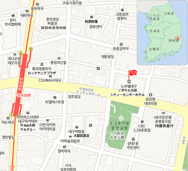 • タクシー : 一般3,500ウォン程、所要時間 : 約10分