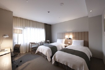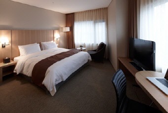 九老(クロ)デジタル団地は2000以上の企業が集まる産業団地で高層ビルが立ち並ぶ韓国有数のオフィス街で、日本からもビジネスマンが多く訪れます。この九老デジタル団地に2010年に誕生した特2級ホテルが【ベストウェスタンプレミア九老ホテル 】です。地下鉄2号線九老デジタル団地から徒歩5分の絶好の位置にあり、ソウル市庁方面や江南(カンナム)方面にも地下鉄一本で移動できます。客室はスタンダードでも8坪の広さと比較的余裕のある造りで、客室内には無線、有線LAN(無料)が完備され、セーフティボックスやアイロンなども用意されています。
