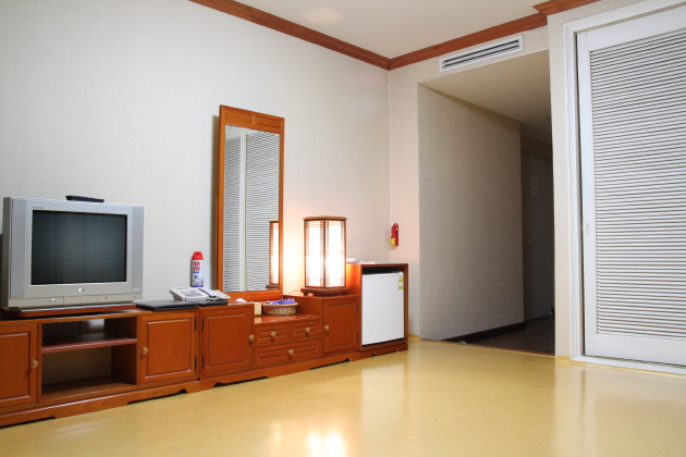 客室の広さは約8坪。夏は涼しく、冬は温かなオンドル床。布団2組。 シングルベッドとダブルベッドが配置されたベッドルームとオンドル部屋の2ベッドルームタイプ。客室の広さは約12坪。