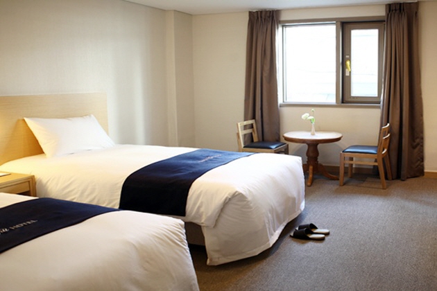 ホテル周辺には地元の人が利用する安くて美味しい食堂が並んでいますので、食の面でも不便はありません。客室内はシンプルですが、広さに余裕がありますので、快適にお休み頂けます。客室タイプはオンドルはなく、すべてベッドタイプとなります。ご家族連れでも利用できるようファミリータイプの客室が2タイプ揃っています。ホテル付帯施設はカフェ&レストラン、エステ、マッサージ、カラオケなどの施設が整っています。釜山リピーター、初めての方ともに満足できるタワーヒルホテルをぜひ一度ご利用ください。