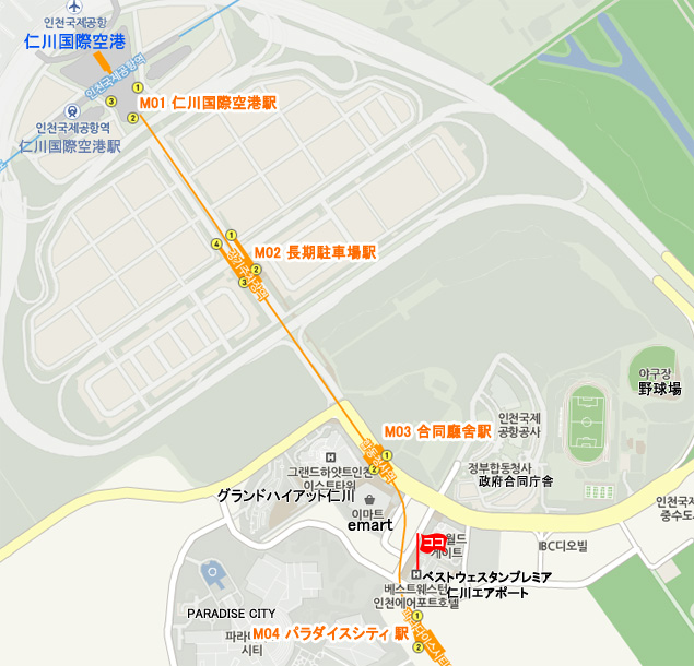 仁川空港までの交通路は高速道路(仁川国際空港高速道路)を利用した、バス、タクシーなどが中心で、2007年3月より空港鉄道が一部開通(金浦空港まで)され、利用されています。
