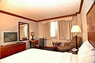 4階から9階までは客室フロアー。客室タイプは、デラックス(ダブル・ツイン・オンドル)、ジュニアスイート、ロイヤルスイートの3タイプ、5種類。どの客室にもインターネットが可能なLAN回線が引かれています。また、1階にはビジネスセンターがあり、さまざまなサポートを行っています。レストランは、1階にコーヒーショップ&レストランの「ティファニー」があり、朝食ビュッフェはここで取れます。2階には落ち着いた雰囲気の日本料理の「銀座」があり、個室も用意されています。
