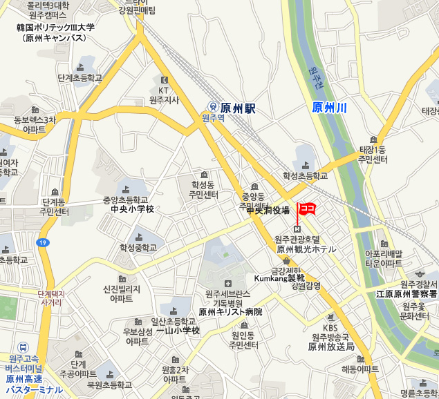 住所 江原道(カンウォンド)原州市(ウォンジュシ)中央洞(チュンアンドン)63番地