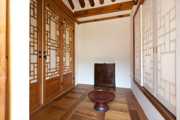 観光地として人気の高い北村韓屋マウルは、古宮の景福宮(キョンボックン) と昌徳宮(チャンドックン)の間に位置し、朝鮮時代には両班(ヤンバン)などの支配階級の居住地だった歴史を持ち、現在でも朝鮮時代の伝統や風情がが多く残る一帯です。そんな北村韓屋マウルの中でも一際重厚で美しい門構えが目を引く韓屋が最高級のおもてなしと施設を誇る翠雲亭(チウンジョン)です。既存の韓屋建物を一年以上の歳月をかけて丁寧にリフォームし、韓屋の伝統を重視しながらも宿泊客が快適に過ごせるよう設備が整えられています。建物は母屋と離れが2棟あり、客室が4室ある他、遠赤外線を利用したチムジルバンがあります。客室には全てお茶を楽しめる空間が用意され、ゆったりとした時間を過ごせます。また、室内には韓国の古家具や優れた工芸品配置され特別な空間となっています。