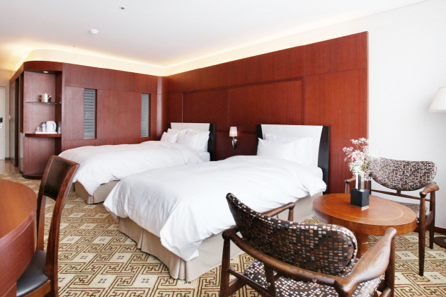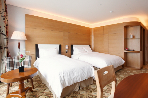 そんな驪州に2013年にオープンしたサンバレーホテル驪州(ヨジュ)は大型のウォーターパークやサウナを備えたレジャーホテルで、観光地のほかに驪州プレミアムアウトレットにも近く、驪州観光の拠点に便利なホテルです。室内プールや室内ゴルフ練習場、レストラン、スカイラウンジ、ロビーラウンジ、ビジネスセンター、フィットネスラウンジ、キッズカフェなど付帯施設が充実し、ホテルライフも十分にお楽しみ頂けます。客室はブラウンでシックにまとめられ、スタンダードクラスでも9坪以上の広さがありゆっくりとお休み頂けます。客室からは南漢江のゆったりとした眺めも楽しめ、休息にぴったりなホテルです。