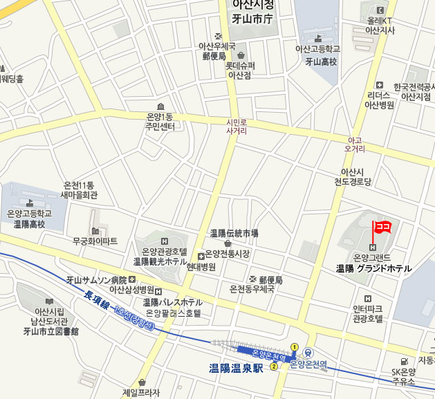 •  温陽温泉(オンヤンオンチョン)駅から:徒歩約5分