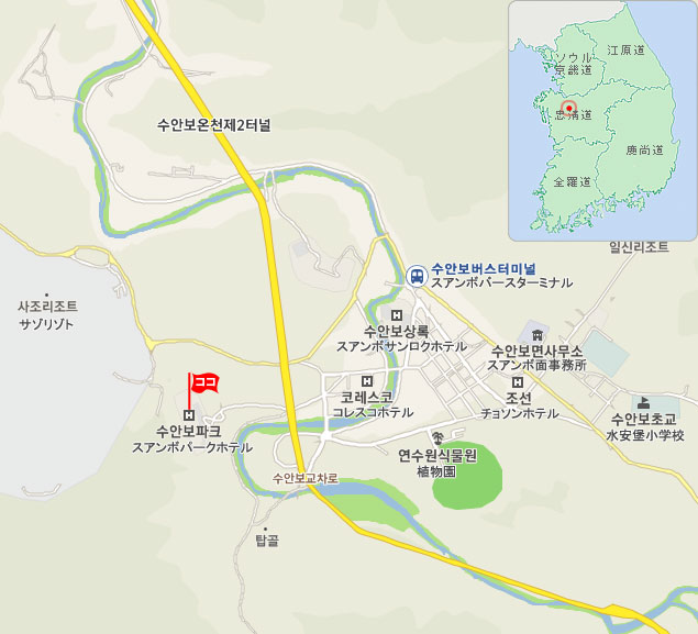 韓国忠清道淸州 ・忠州エリアのホテル予約手配【水安堡(スアンポ)パークホテル(Suanbo Park Hotel)】