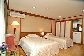 ホテルの客室は本館も新館も2階、3階部分。タイプは、スタンダードダブル(9坪)、スタンダードツイン(9坪)、スタンダードオンドル(9坪)オンドルスイート(14坪)、ロイヤルスイート(35坪)の5つ。どの客室も明るく清潔。また、ホテルのスタッフのサービスにも注目でソウルの一流ホテルに引けをとらないサービスで充実したホテルライフが過ごせます。山の中にあるため、食べ歩きやショッピングに気楽に出かけることはできませんが、その分水安堡温泉の優しい自然を十分に楽しむことができます。