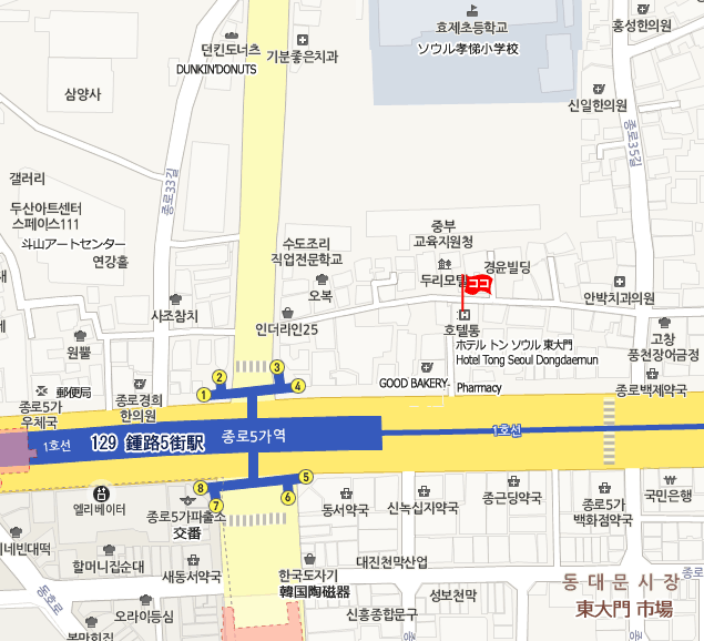鐘路5街(チョンノオーガ)/駅下車下車。4番出口から徒歩約5分。