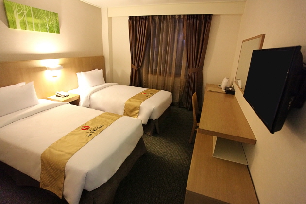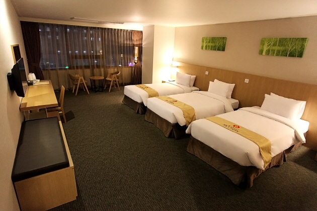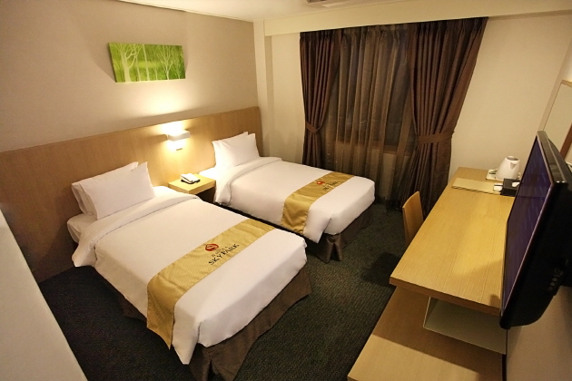 客室はシンプルなデザインでまとめられゆっくりとお休み頂けます。客室タイプはダブル、ツイン、トリプル。全室でWi-Fiが無料で利用でき観光情報やメールのチェックも気軽にできます。地下1階には24時間利用できるコインランドリーやPCルームがあり、また各階にはIt`s Skinコスメゾーンやスモーキングゾーンもあり快適なホテルライフをお過ごし頂けます。魅力的な立地を誇るホテルスカイパーク済州1は観光からビジネスまで様々なシーンに対応できるホテルです。