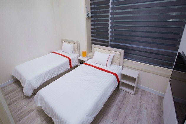 明るい白を基調としたシンプルなインテリアでまとめられた客室はゆっくりとお休み頂ける落ち着いた雰囲気。大きな窓からは弘大の街並みもお楽しみ頂けます。薄型テレビ、電気ケトル、ウォッシュレット付トイレ などが備わり、また全客室でWi-Fiも無料で利用できますので旅行情報やメールのチェックにも問題ありません。ホテル ジ・オーレでパワー溢れる弘大エリアをお楽しみください。