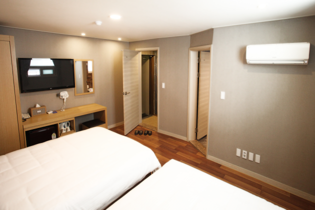 海雲台ビジネスホテルSは海雲台エリアの海沿いから少し離れた繁華街に位置し、釜山地下鉄2号線海雲台駅まで徒歩4分と海雲台エリアだけでなく、釜山に点在する観光地への移動にも便利なホテルです。客室はシンプルで利用しやすく、床はオンドルですので夏は涼しく、冬は暖かく快適にお過ごし頂けます。全客室内でWi-Fiが無料で利用できますので旅行情報やメールチェックにも問題ありません。また変圧器も配置されていますので、日本の電気製品もご利用頂けます。セルフ式の簡単な朝食がサービスで提供されますので忙しい朝にご利用ください。ビジネスから観光での利用まで幅広く対応できる海雲台ビジネスホテルSで快適な釜山旅行をお楽しみください。
