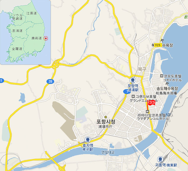 • 浦項(ポハン)駅:ホテルまで、タクシーで 約10分