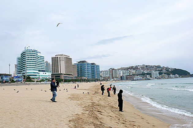 海雲台(ヘウンデ)海水浴場は国内で最も有名なビーチです。海雲台という名前は大変古くからあり、新羅時代の学者である崔致遠(857~?)が冬栢島の近くを訪れたとき, 景色に感動して冬栢島にある岩壁に「海雲台」という文字を刻んだことに由来しています。海雲台ビーチは、長さ1.5㎞、幅 30~50m、面積 58,400㎡の砂浜で、一度に約12万人が海水浴をすることができます。 砂浜の砂はサラサラしているため体についてもすぐに落ちるという特徴があります。毎年7,8月になると国内外からたくさんの観光客が訪れ、海水浴を楽しんでいます。また一年中、多彩なイベントが開催されていますので、いつ訪れても楽しめます。