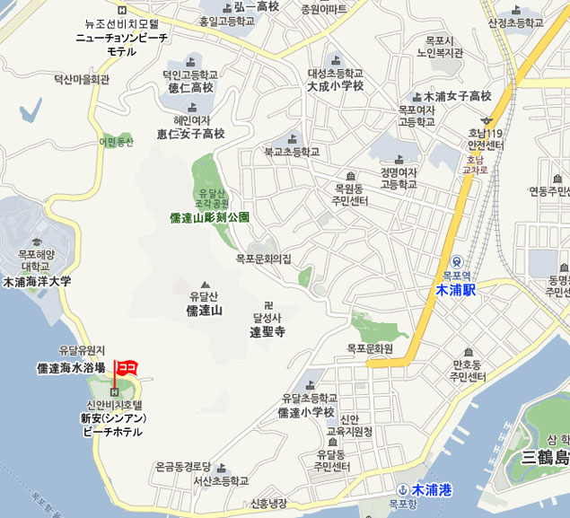 木浦(モッポ)バスターミナルからホテルまでタクシーで 20分所要。