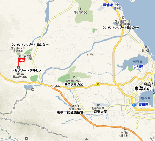 ソウルから車で約3時間の距離にある江原道・高城(コソン)は朝鮮半島を分断する軍事境界線の最東部に位置し、日本海に面した雄大な海や深い山々に恵まれた自然豊かなエリアです。大明(テミョン)リゾートデルピノは四季を通じて快適に利用できる総合リゾート型宿泊施設で、ゴルフ場、ウォーターパーク、サウナ、スパ、娯楽場、レストラン、ダイニング、カフェなど様々な付帯施設が揃っています。館のの設備やサービスはもちろん、客室からの山々の眺めも好評で国内でも人気の高いリゾートとして知られています。