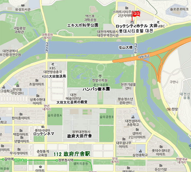 •  地下鉄1号線政府庁舎(Government Complex, Daejeon)駅 タクシーで約10分