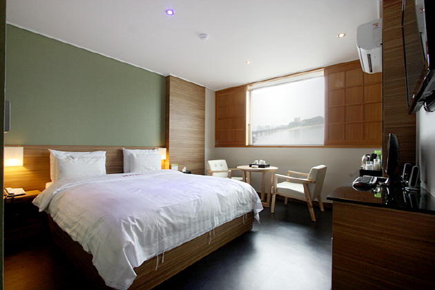 ヨジュJホテルは南漢江のほとりにある静かなホテルで、多くの客室が南漢江に面しのんびりとした景色を楽しめます。ヨジュ高速バスターミナルやヨジュ駅からもタクシーで5分程度と市内からのアクセスがよく、客室の広さも十分にあり、質の良い寝具でゆっくりとお休み頂けます。wi-fiも無料で利用できますので、旅行情報やメールのチェックにも便利。京江(キョンガン)線の開通で首都圏の板橋(パンキョ)駅からヨジュ駅まで48分とますます訪れやすくなったヨジュを旅行の際にぜひご利用ください。