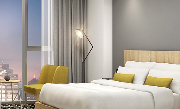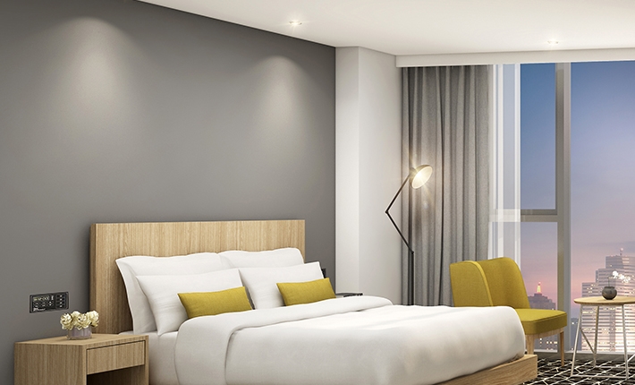 洗練されたインテリアでまとめられた客室は明るく、ゆっくりとお休み頂けます。一般的なスタンダードタイプでも8坪以上の広さがあり、ゆっくりとお休み頂けます。旅行に欠かせないネット環境も完備され、全客室で(パスワードなし)でWi-Fiを利用できます。付帯施設はビジネスセンター、フィットネス、コインランドリー、レストラン、ラウンジバー、パーティにも利用できるミーティングルームのほか、22階にはDJや有名ミュージシャン公演、プールパーティーが開かれるルーフトッププールなど充実しています。