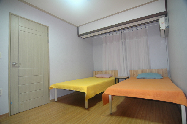 濟州道の南側・西歸浦市の爲美(ウィミ)港の近くに位置する爲美 (ウィミ)一戸建ての家は社員旅行や海外オフ会などのグループ旅行から家族旅行まで、他の宿泊客を気にすることなく自由に済州島リゾートライフを満喫できる一棟貸切タイプのゲストハウス。庭には大きな柿の木が茂り、アンズやりんご、梨、蜜柑など季節ごとの様々な果物を目当てに小さな鳥もやってきて鳥のさえずりで気持ち良く朝を迎えることができます。清潔に保たれた客室は5つ。調理が可能なキッチンが付いたリビングも揃い最大10名までリーズナブルにご利用頂けます。ゲストハウスの客室は5室。7名様までのグループではRoom1, Room2, Room3, Room4の4室とリビングを、10名様までのグループは全客室とリビングを自由に使用頂けます。
