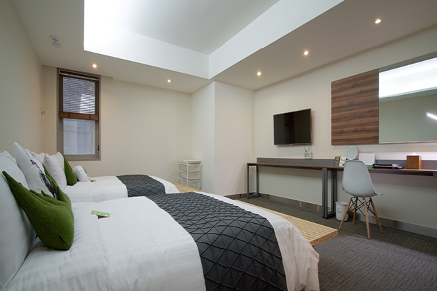 Route1 (市庁方面行き/6701番)バスに乗り ロッテホテルソウル(明洞)前にて下車後、徒歩約8分。