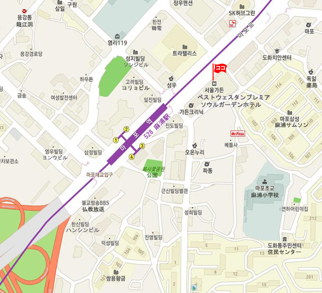 6702番(南山行き)バスに乗車し、ベストウェスタンプレミアソウルガーデン(中央車路)で下車。