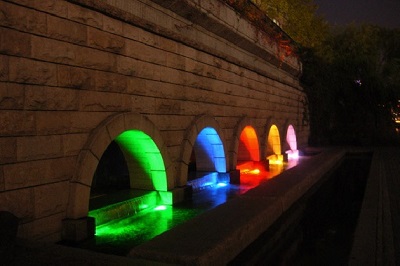 清渓川(チョンゲチョン)はソウルの中心部を流れる長さ約5.8キロの河川。李氏朝鮮時代初期から下水道、貧民街、埋め立てと不幸な歴史を辿っていましたが、清渓川の上に架けられていた高架道路の老築化と撤去に伴い2年の歳月をかけて復元工事が行われ、現在ではソウル市民の憩いの場として生まれ変わりました。 川には人工的に浄水された清らかな水が流れ、昼には自然と共存した憩いの場として、夜は美しくライトアップされロマンティックな雰囲気を創り出しています。