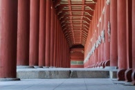 朝鮮王朝始祖.太祖やハングルを制定した世宗大王など優れた功績を残した王とその王妃を祀った正殿は宗廟(チョンミョ)の中心に位置し、太祖を最も西側に安置し、新たな位牌が安置される度に増築を繰り返したため、101メートルもの長さを誇る世界最長の木造建築物とされます。また書く部屋の扉の板の間は少しずつ隙間が作られ、これは安置された魂が自由に出入りできるように配慮されたものとされています。 毎年5月には全州李氏一族が集まる宗廟祭礼祭が行われます。王に対して祭祀を行うのは中国から伝わったものですが、現在までその伝統を維持しているのは宗廟だけとされ、2001年に世界無形文化遺産にも登録されました。