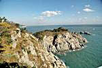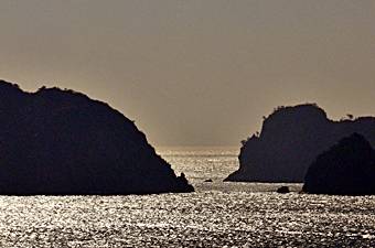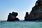 ターミナルを出港して外島(ウェド)に到着する前に韓国の名勝2号に指定されている海金剛へも訪れます。湖と海、奇岩怪石と青い松林が広がる自然美を楽しめる。 海の中から突き出ている岩山と奇岩がおりなす様子が金剛山に喩えられて、海金剛と呼ばれるようになった。
