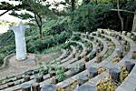 韓流ドラマ「冬のソナタ」のラストシーンで一躍有名になった外島(ウェド)海上観光農園は、青い海と周辺の景色が美しい閑麗海上国立公園内にあります。巨済島(コジェド)から約4km程離れた海上に位置し、長承浦港から遊覧船に乗って20分ほどで着きます。1969年に船釣りの最中、嵐を避けようとこの島に来たイ・チャンホ氏が、この島に魅せられて島を購入し、30年の間夫人とともに心をこめて作り上げた海上の楽園です。約44,000坪の敷地には、椿や亜熱帯植物のサボテン、椰子などが茂り、南国ムードで溢れています。また12体のビーナス像があるビーナスガーデンや、飲み物を飲みながら雄大な海を眺められるパラダイスラウンジなども用意されています。