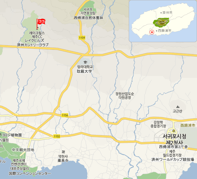 レイクヒルズ済州カントリークラブは済州島の中央にそびえる漢拏山(ハルラサン)と特級ホテルが集まる韓国屈指のリゾート地.中文リゾートのほぼ中間点、済州国際空港から車で40分の距離に位置する2002年にオープンしたゴルフ場です。季候が穏やかな済州島では一般的に1年を通じてゴルフを楽しむことができますが、ゴルファーを悩ませる強い風が吹くことでも知られます。レイクヒルズ済州カントリークラブは海抜400メートルの高台に位置し、済州島の他のゴルフ場に比べ風の影響が少ないのも特徴の一つで穏やかな空気の中快適なプレーが楽しめます。またコースの排水施設に特別気を使っているため梅雨の雨の多い時期でもベストなコンディションを保っています。