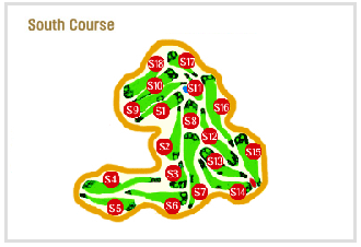 コースは18ホールの南コースと同じく18コースの北コースの2種類。小ぢんまりとしながらも美しい造景が広がる各コースは大小様々な形をした池と共に工夫がなされ、攻略心をそそるものとなっています。コースごとに休憩を取るための空間が準備されていますので快適なゲームをお楽しみいただけます。2つのコースの中で、南コースは全体コースが長く、パワーゴルフを楽しむことが出来、北コースは反対に精巧なショットが必要となる繊細なコースに仕上がっています。