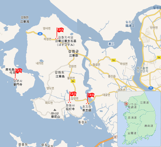 ソウルから車で約1時間半の距離にある韓国で5番目に大きな島、江華島(カンファド)は紀元前から人が居住し、島には古代人の支石墓とされる巨石遺跡が120基以上存在します。コインドルと呼ばれる支石墓は2000年にユネスコの世界文化遺産に登録されました。その後13世紀に入り、元(モンゴル)が韓半島に侵攻した際には、江華島に都が移され、その際に国を災厄から守る様にと現在世界遺産となっている慶州海印寺の大蔵経板殿に収められた高麗八萬大蔵経が江華島で製作されました。その後近代に入っても度々諸外国からの圧迫を受け、島内にはその当時の砲台跡や城門が残り苦難の歴史を物語っています。現在でも海を隔てて北朝鮮と向かい合っているため過去にも現在でも国防上の重要な拠点となっています。