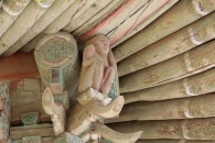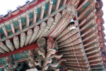 伝灯寺は檀君の3人の息子が築いたと伝説が残る三郎城という山城の麓に佇む高句麗時代(372年)に創建されたと伝えられる古刹。境内には1621年に再建された大雄宝殿や薬師殿、梵鐘、104枚の蔵経板の木版などがあります。また江華島に赴任した強欲な地方官職の為に二度と実らぬことがなくなったという銀杏や19世紀に起こったフランス侵攻の際に被弾した壁など、歴史を物語る見所があります。そして大雄宝殿の屋根にも物語が存在します。大雄宝殿の軒端には一見赤い猿の様な四つの彫刻が屋根の四方を支えています。 これは大雄宝殿の建設工事に携わっていたある職人が里の女性と恋に落ち、賃金を全て女性に渡し結婚を誓いましたが、結局その女性は他の男とお金を持ち逃げし、怒りと失意に陥った職人がその女性の裸身像を彫り、永遠に読経を聞きながら大雄宝殿の屋根を支えさせたと伝えられています。